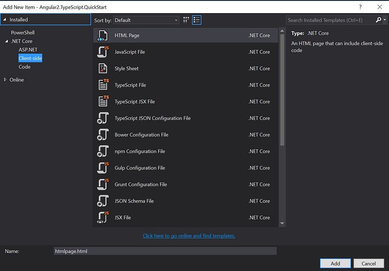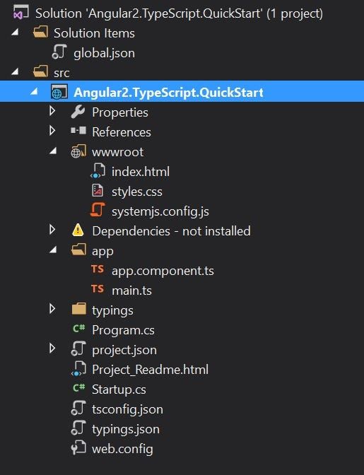 I do not wish to copy-paste their explanations, so if you wish to have more explanations on what is what and why things are the way they are, I would advise you to read the explanations in the above-mentioned link. It is well-written. This guide is just about setting up an Angular 2 with TypeScript and ASP.NET Core in Visual Studio 2015.