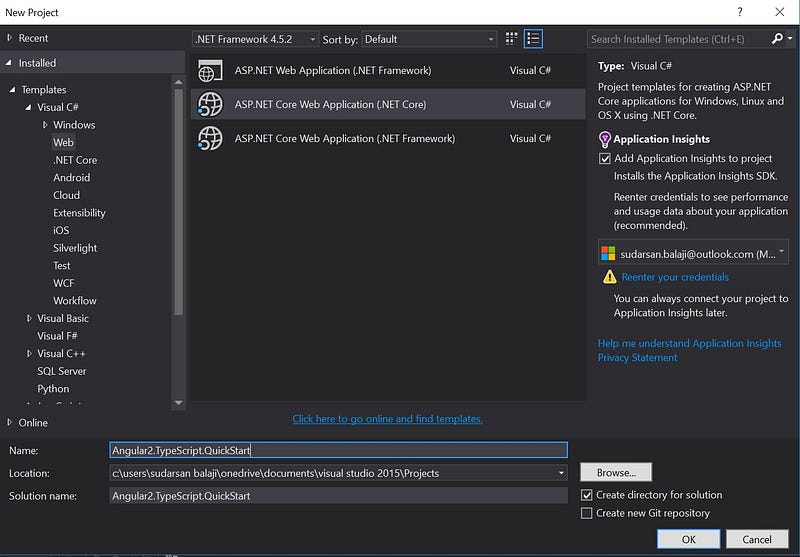 Angular 2 Quick Start with TypeScript and ASP.NET Core in Visual Studio 2015