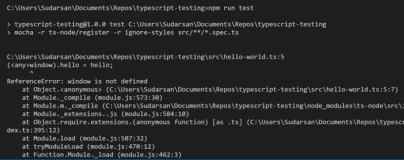 If we reference window, or the DOM, in our code (client side application, right?), that opens up new errors for us, because ts-node does not know about the window or the DOM. And it’s very common to use them, and so it’s easy to run into these issues (as I found out).