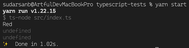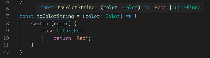 As we can see, the return type is “Red” | undefined which isn’t exactly what we’re looking for. Let’s try to change that.
