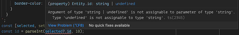A little while ago, I was working on a change in a typescript-react app with a colleague. We ended up making a breaking change to a major feature, and — as a result — had to update all the usages as well. In one such update, we now had to use a numeric entity id that was present in the url. We used react-router with url params, and react hooks, and the code I wrote went something like this: